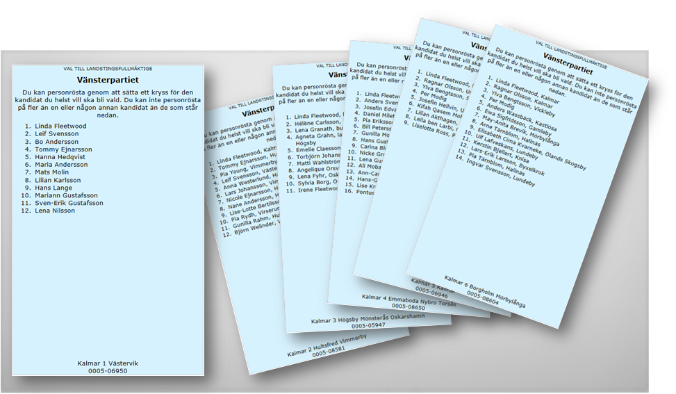 Vänsterpartiet valsedlar till landstingsfullmäktige i Kalmar län 2014. Vill du stå med i valet 2018?