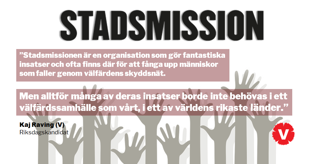 Stadsmissionen gör ett fantastiskt arbete, men i ett välfärdssamhälle som vårt, i ett av världens rikaste länder, ska ingen behöva vara beroende av välgörenhet för att klara sin vardag. Vill du, som jag, att Sverige ska vara ett land för alla – inte bara de rika? Det kräver ett starkt Vänsterparti.