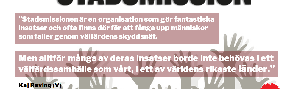 Stadsmissionen är en organisation som gör fantastiska insatser och ofta finns där för att fånga upp människor som faller genom välfärdens skyddsnät. Men alltför många av deras insatser borde inte behövas i ett välfärdssamhälle som vårt, i ett av världens rikaste länder.