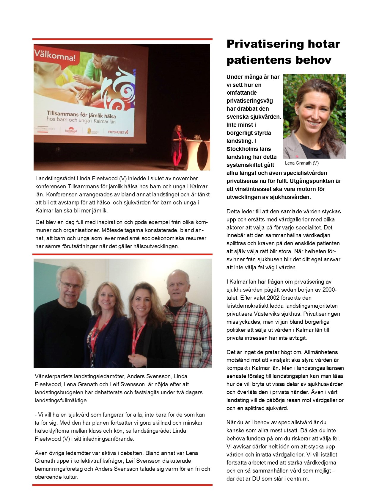 Nu är landstingsgruppens Nyhetsbrev NR 1 2017 ute. Läs det genom att klicka på länken eller någon av bilderna. Förra nyhetsbrevet hittar man här: Landstingsgruppens Nyhetsbrev NR 5 2016.
