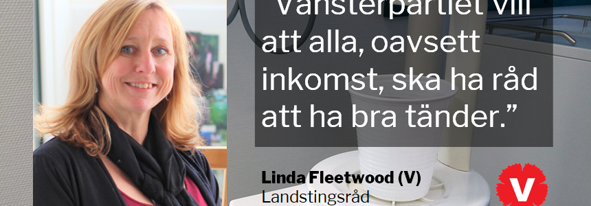 Vänsterpartiet vill att alla, oavsett inkomst, ska ha råd att ha bra tänder. Därför har vi drivit igenom en rad reformer, som en dubblering av det allmänna tandvårdsbidraget för alla åldersgrupper. Det börjar gälla nu i april. Och tack vare Vänsterpartiet har också åldersgränsen för fri tandvård höjts succesivt till 22 år i år. Nästa år höjs gränsen till 23 år, för att fler ska ha råd att gå till tandläkaren.